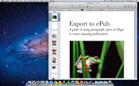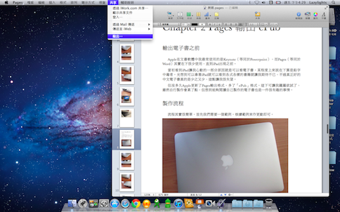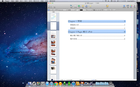 Pages倒是一直被我冷凍在一旁,直到某次更新之後,多了ePub格式可以輸出,一整個讓我熱血起來