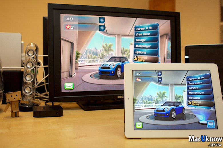 再來,如果你的遊戲有支援AirPlay的話,還可以將遊戲的畫面,投影或延伸到電視上,感覺就像是在打電視遊樂器啦,爽度加分!!