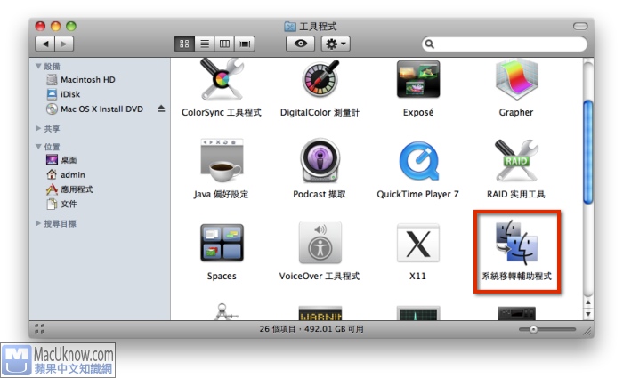 打開應用程式>>工具程式 資料夾後,點選裡面的”系統轉移輔助程式”