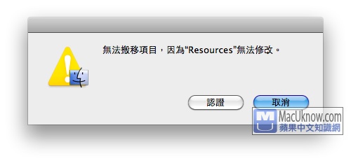 會出現無法搬移項目的警告。沒關系,按下 認証 鈕,再輸入一次密碼就可以了。