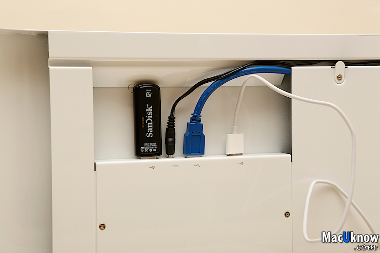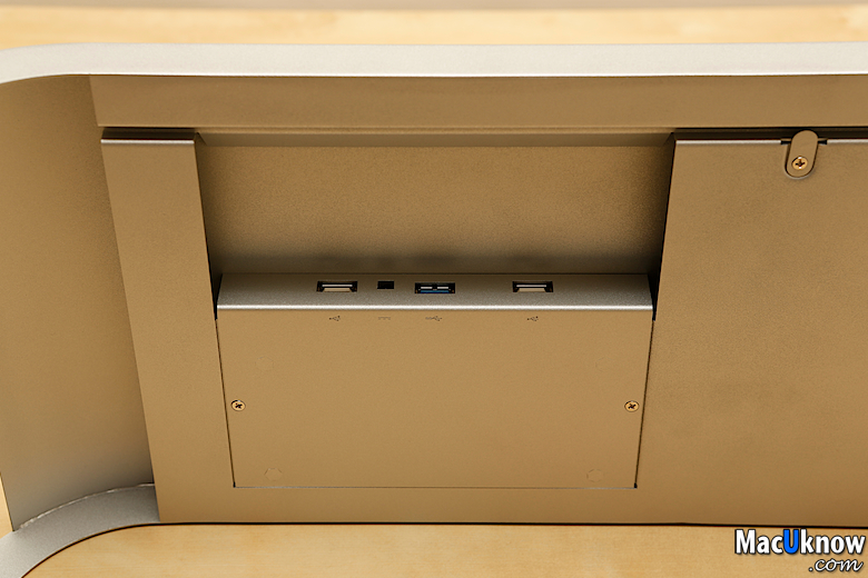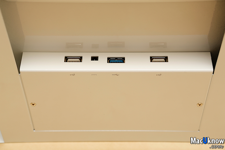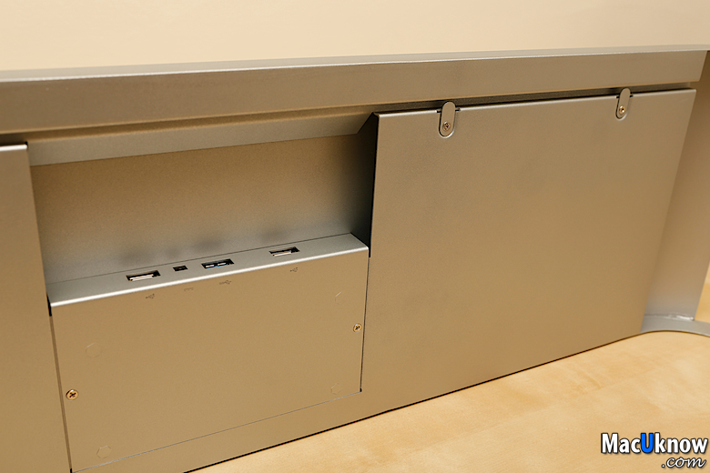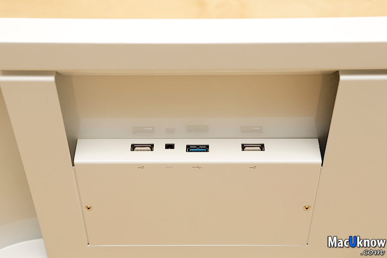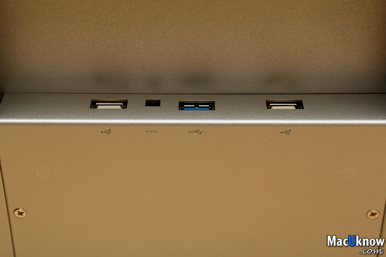 將原本後方的連接埠,內縮到裡面,還預留了一些空間,讓你接裝置或走線,都不會影響到原先用途。