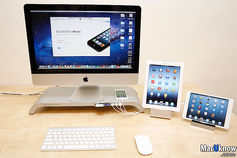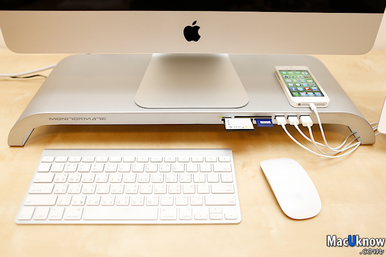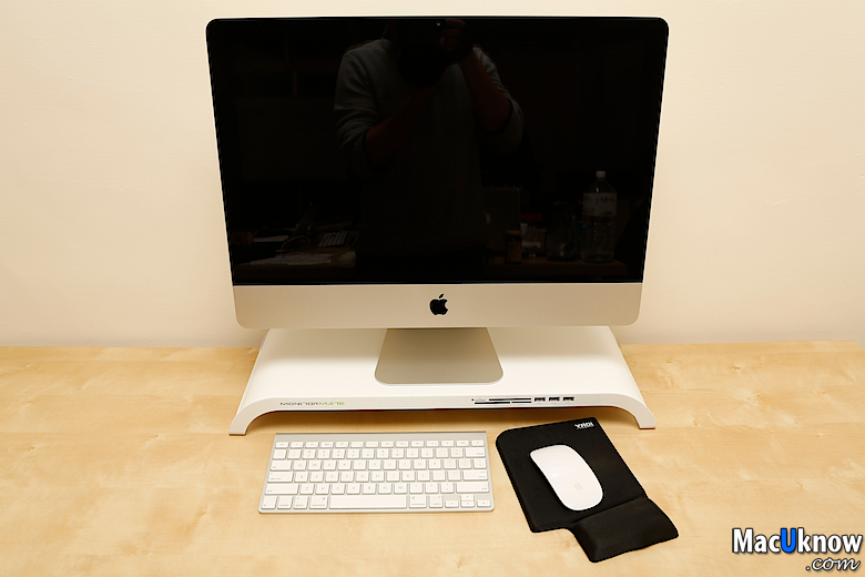有了MonitorMate,下方要收納鍵盤、滑鼠,擺Mac mini(Mid 2010以後款,高度足夠~)或是外接硬碟,都不是問題囉~