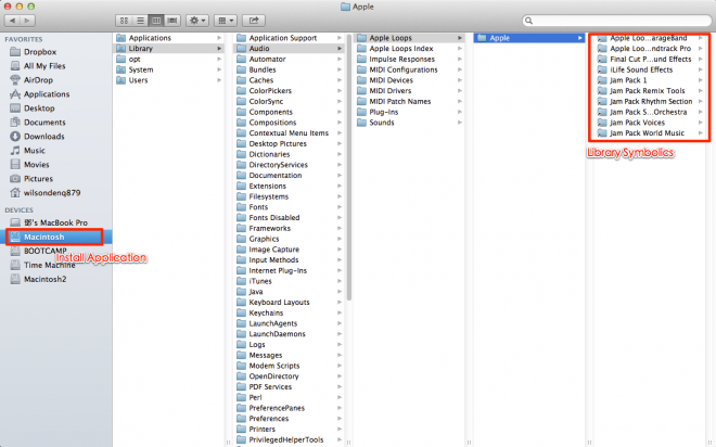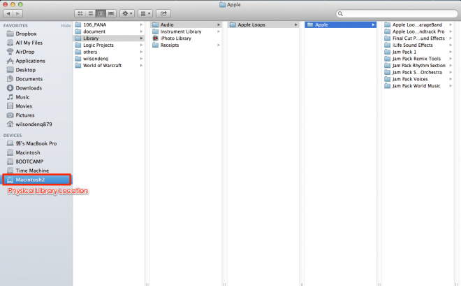 以Logic Pro來說會在 mount point / Library / Audio / Apple Loops / Apple / 之下