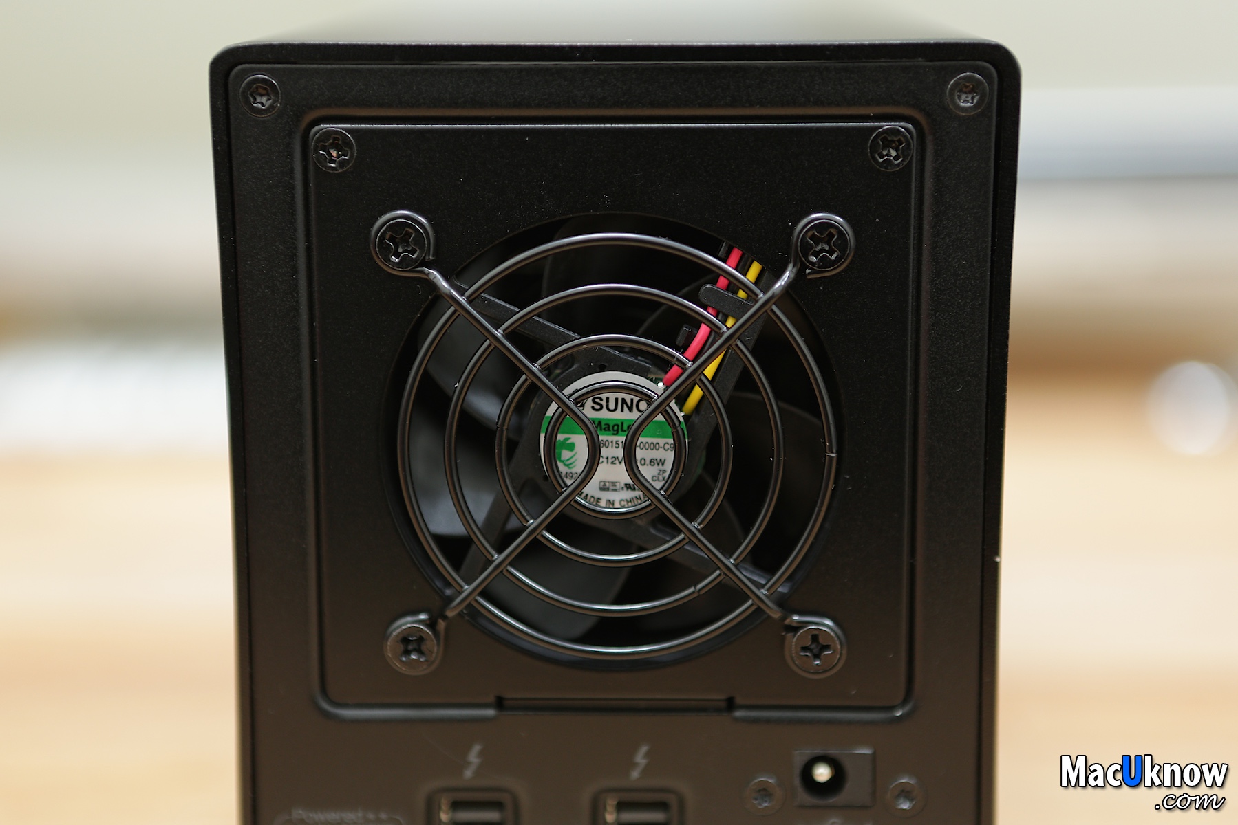 ▼AKiTiO Thunder2 Quad Mini後方也有配備一個『SUNON』的超靜音『60x60x20 MagLev磁浮風扇』,不過就沒有做風扇的獨立開關了。