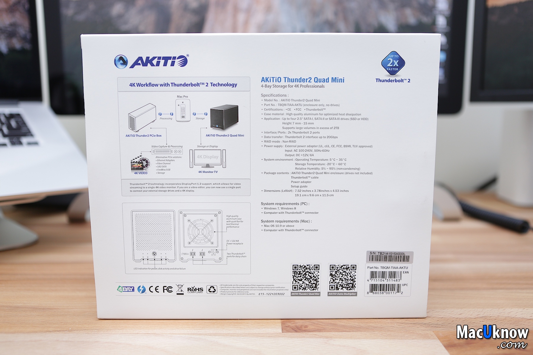 再來,之前在MacUknow開箱測試的另一篇開箱文裡面:[開箱測試] CP值最高的4 Bay Thunderbolt 2外接硬碟盒 – AKiTiO Thunder 2 Quad!