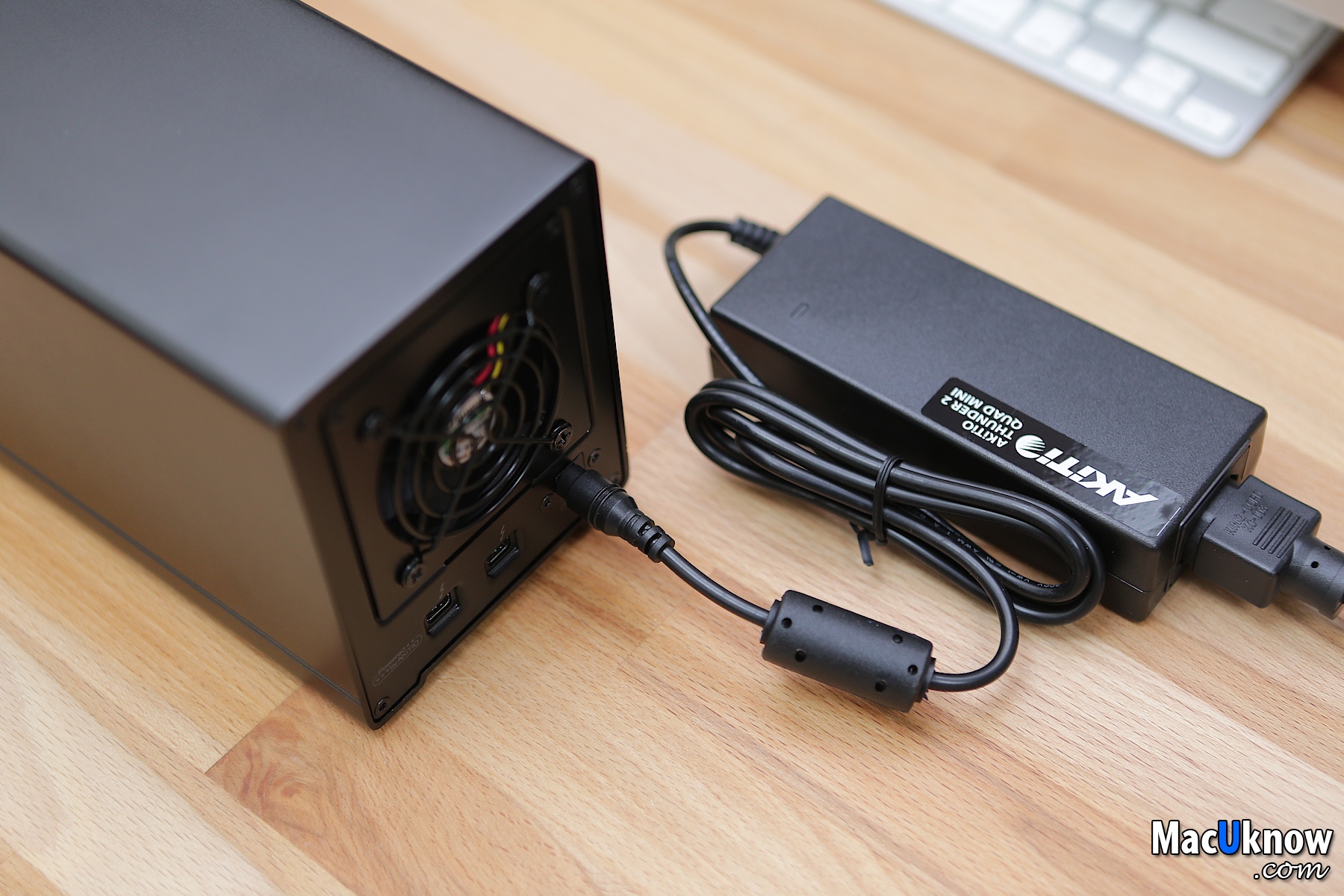 ▼接上電源之後,AKiTiO Thunder2 Quad Mini前方的Logo電源按鈕,旁邊一圈會亮起紅燈,表示有通電。