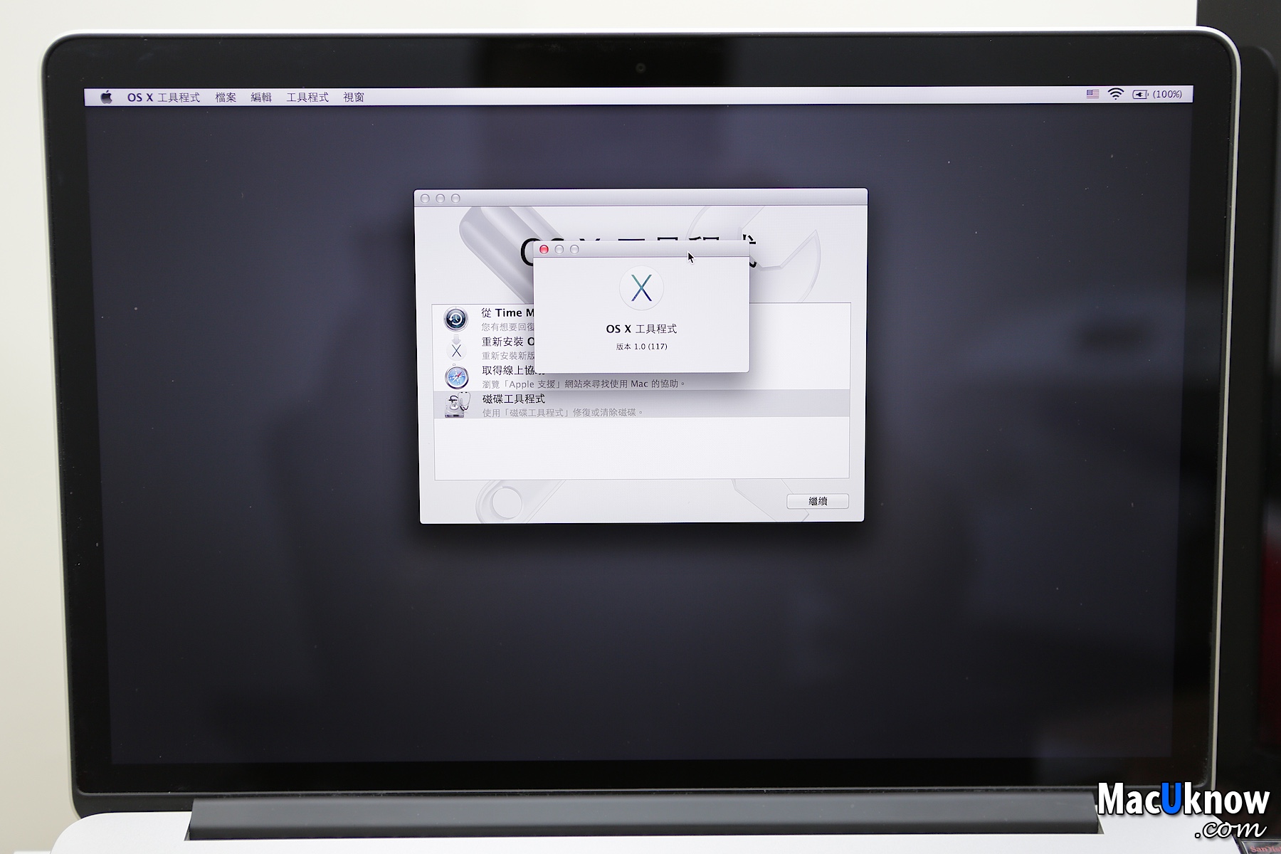 ▼進入Recovery Mode之後,你可以看一下你的OS X工具程式的版本,比較舊版本的,裡面的磁碟工具程式,還是可以很輕鬆地製作RAID組態。