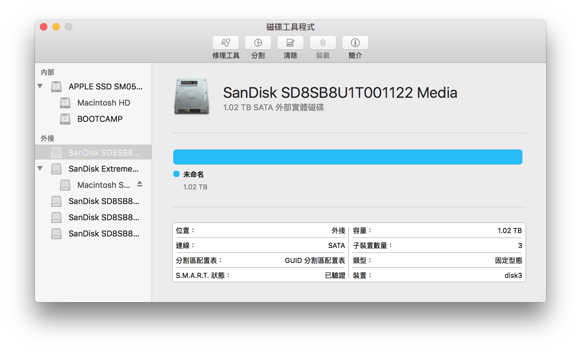 先列出有哪些磁碟掛載在Mac電腦上,並且我們要知道他們叫什麼名字。