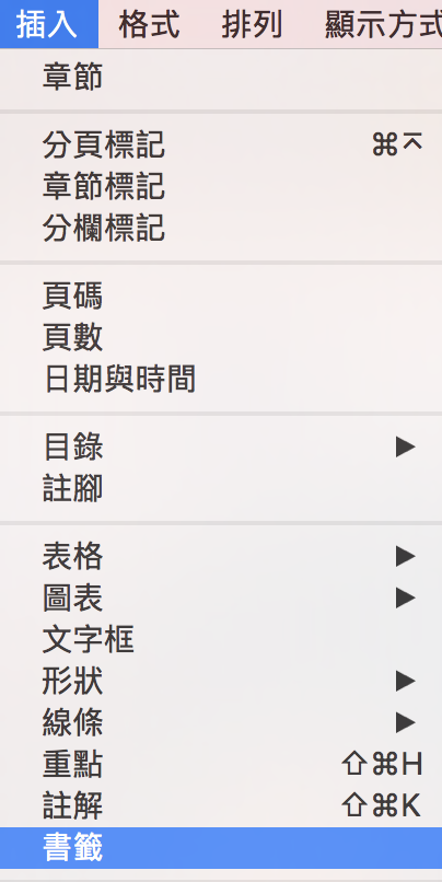 ▼ Pages 很多新功能都是 Keynote 也有的,多出來的新功能,比較有趣的就是書籤功能。