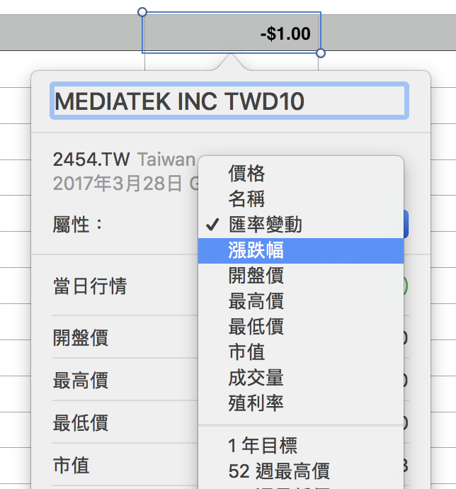 ▼ Numbers 除了也有取代字體等新功能之外,這次終於可以即時的獲取股票資訊。