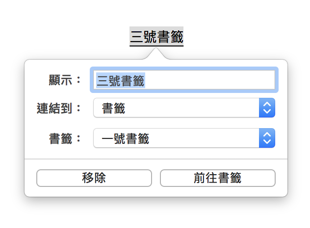 ▼ 書籤功能其實有點像是目錄跟超連結的組合。你可以先選取一段文字A,設定為書籤。