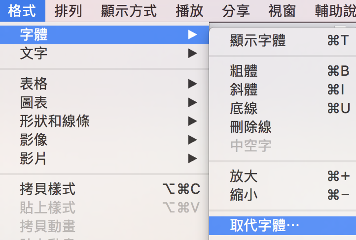 ▼ 然後 Keynote 終於有了整份簡報的取代字體功能。