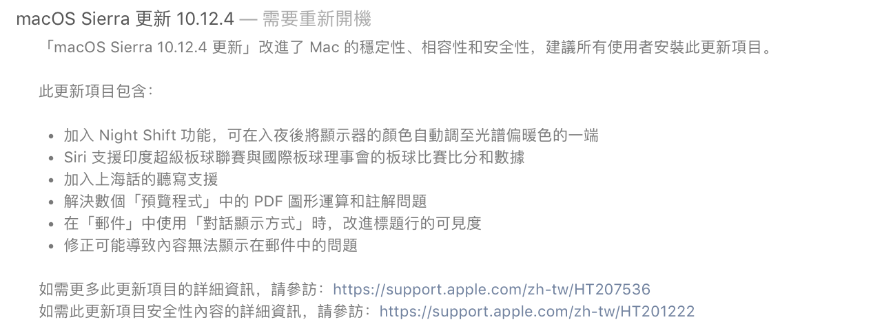 ▼ 首先是 macOS Sierra 的更新,其實主要都是修正穩定性而已,這個版本不是什麼大改。