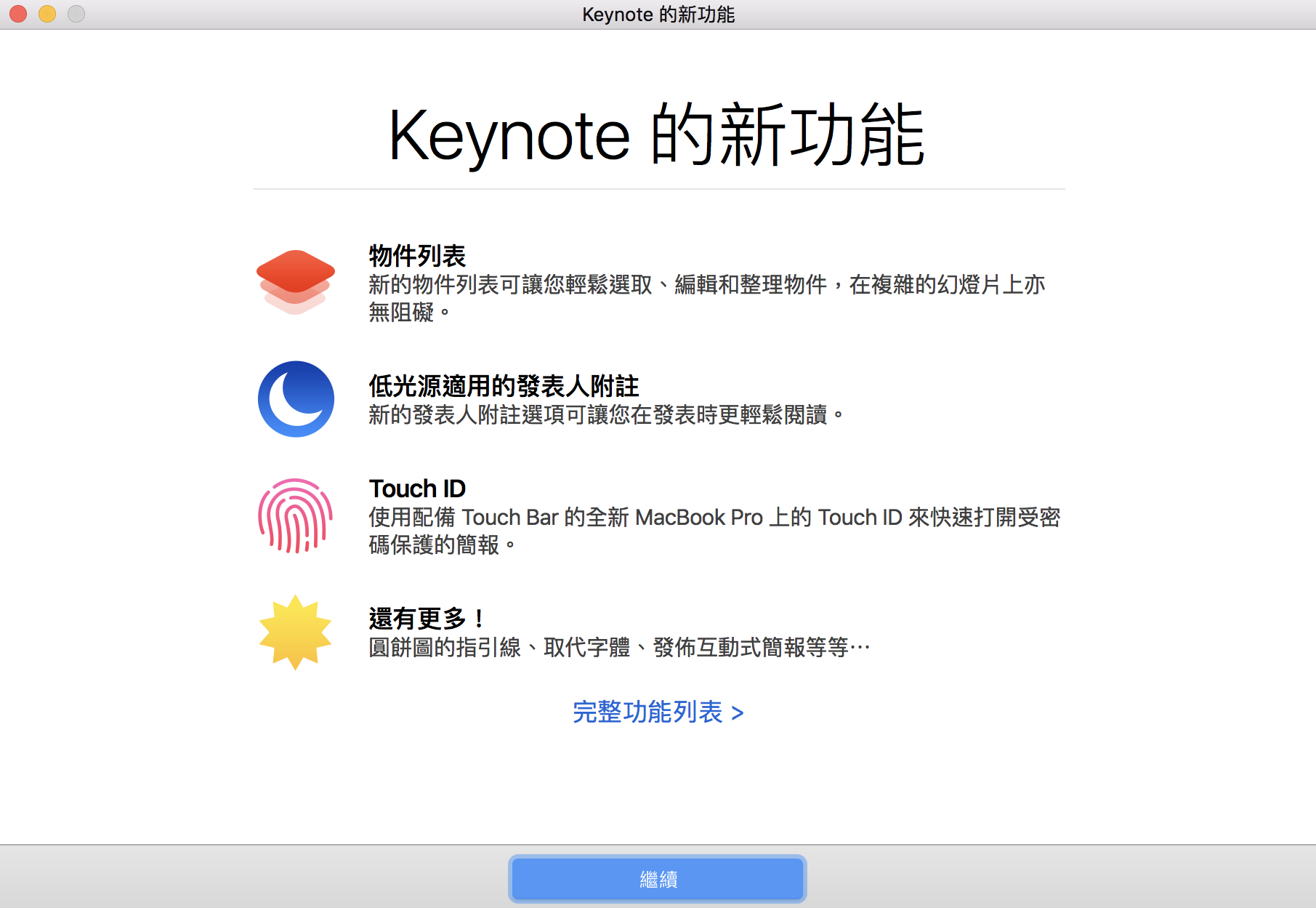 ▼ 接著 iWork 也有大幅度的更新,三個軟體一次滿足,其中 Keynote 更新了早就該有的幾個功能,原本落後 PowerPoint 的馬身拉近了不少,可以再度回到戰場。