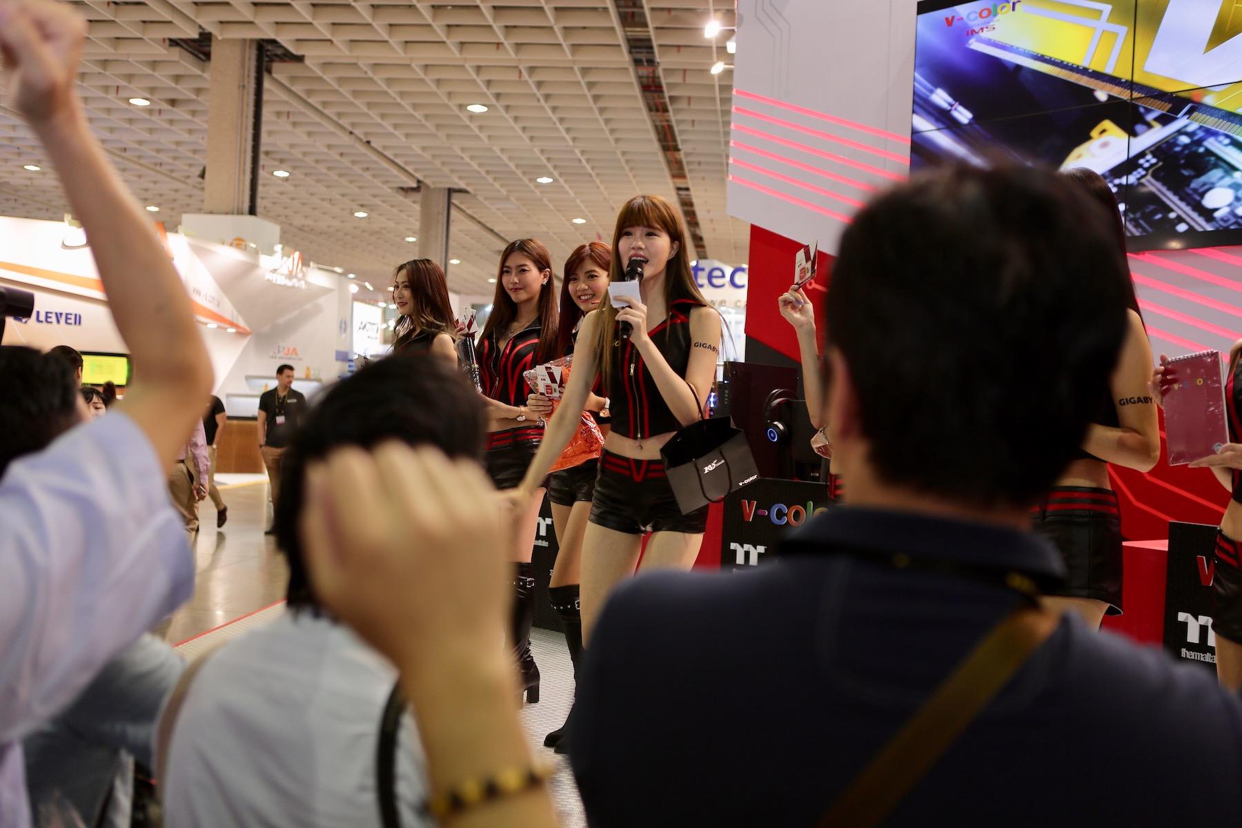 ▼ 雖然是第一天的一大早,但很多攤位已經聚集了很多人氣,紛紛開始祭出 ShowGirl 壓陣,不歸是國際電腦展, ShowGirl 也是國際級的。