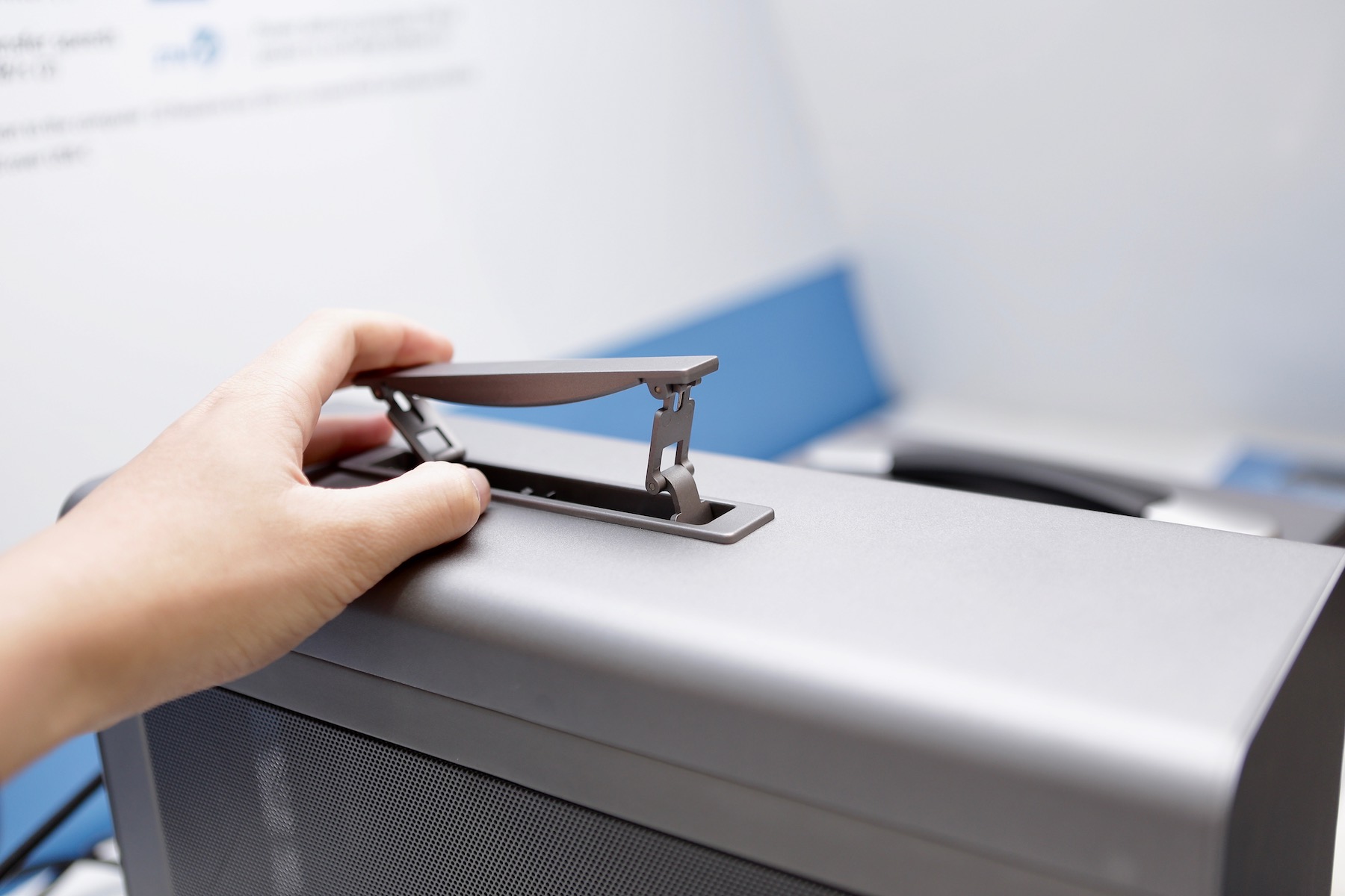 ▼ 而 Node Pro 的提把也改到上方,而且變成按壓式,按一下就彈出來可以提,大大增加了方便性以及科技味。
