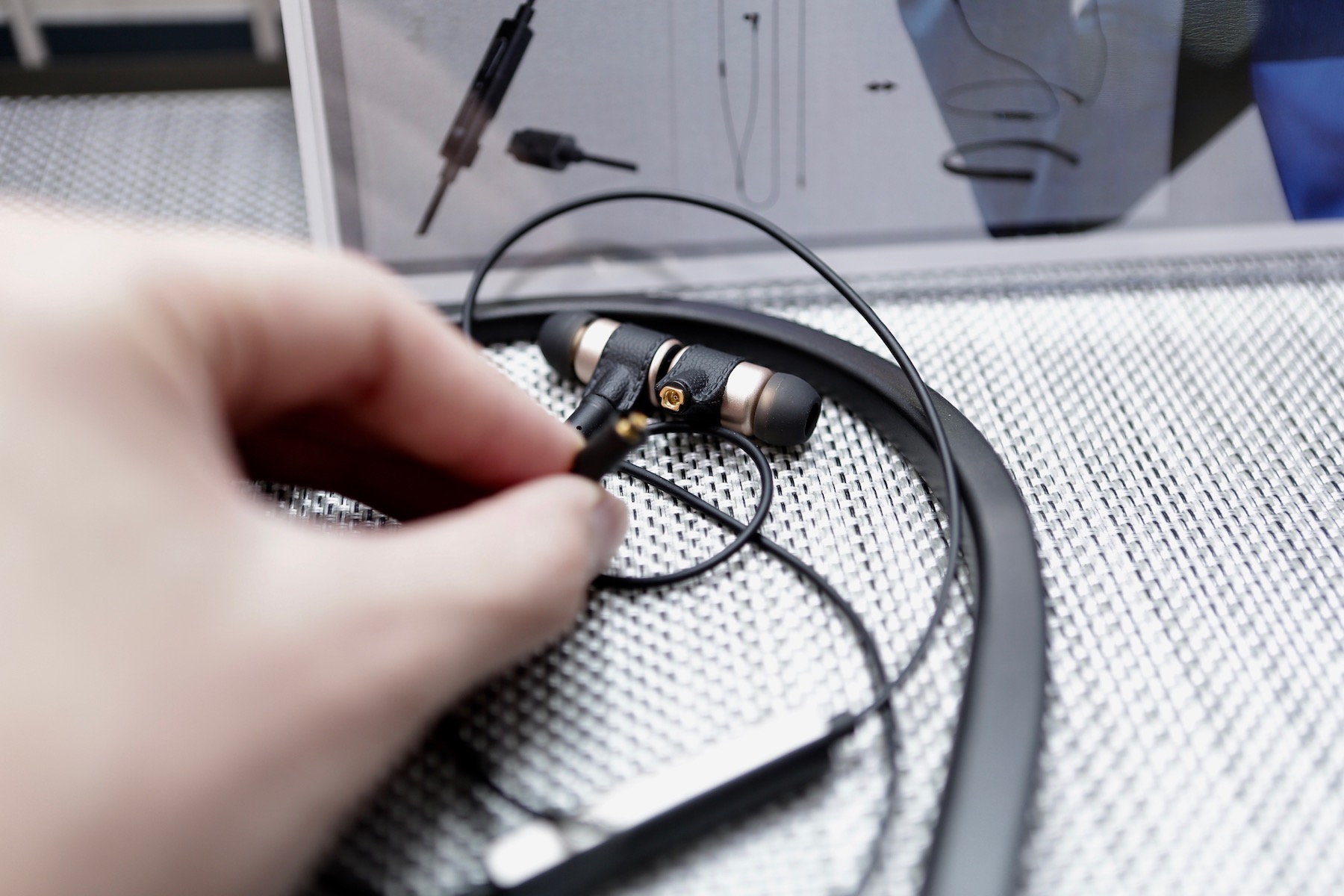 ▼ 最有趣的是,他的這條線是可以換的。換線的目的在哪裡呢?大家都知道藍牙的科技一直在更新,你買了一副好的藍芽耳機,就算耳機本身音效很好,但隨著時代演進,可能當初搭配的藍牙技術已經不復使用。但如果把藍牙的技術做在線上,之後就等於可以換一條線,就更新藍牙的晶片。