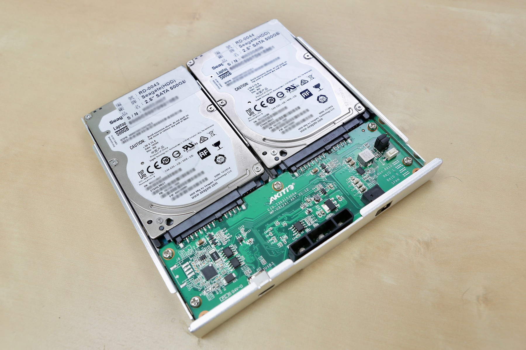 ▼ 這個問題的解答就在這邊 Akitio 的 SK-2520 迷你金牛。他就是一款 Type-C 的行動硬碟外接盒,不但可以同時插兩顆 2.5吋的硬碟,而且還支援硬體 RAID 的控制器,可以說已經找不到缺點了。