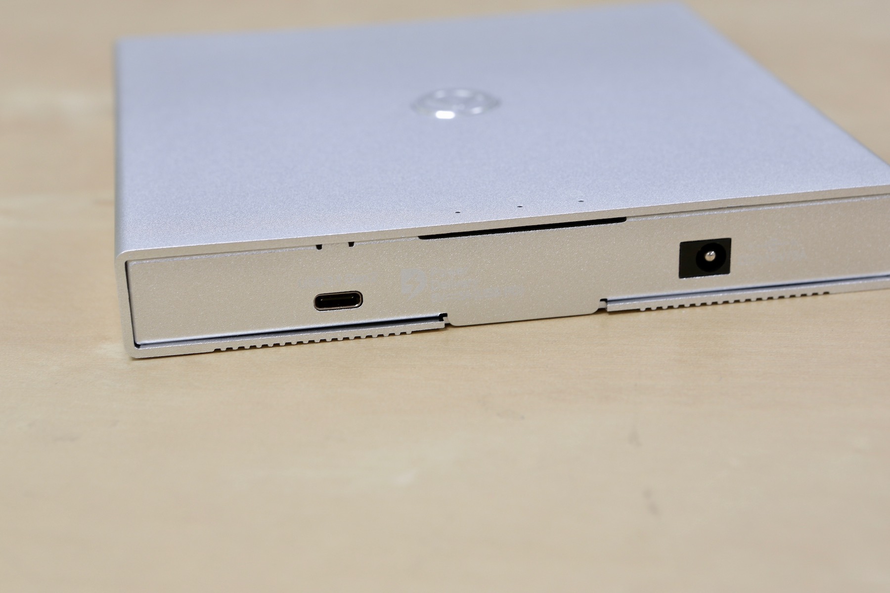 ▼ 前面很單純,就是一個 USB-C 的孔,跟一個電源孔,基本上如果你是 13吋以上的電腦,是可以不用另外插電使用的,如果是 12吋 MacBook,在大量讀取的時候可能會電量不夠,需要外接電源。