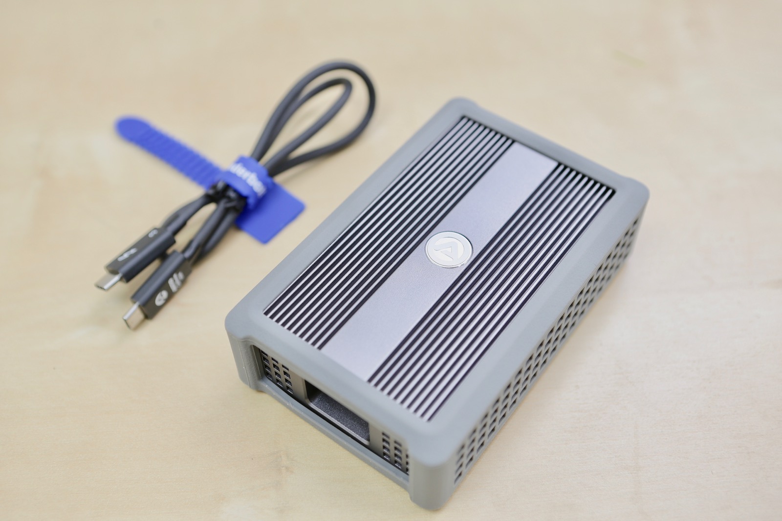 ▼ 接著簡單開箱一下 Akitio 的 10G 轉換器,雖然他售價 9800,但其實已經是三個設備中最便宜的一個,而且有附一條價值 1000 的 ThunderBolt 3 的線,所以其實真的是建構成本划算的轉接器。