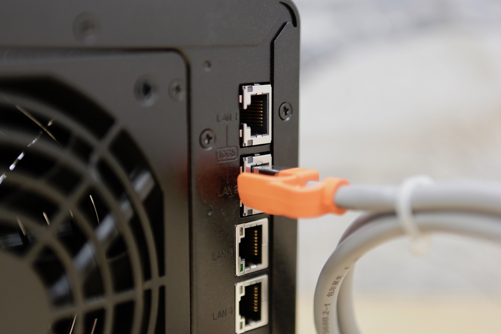 ▼ 那麼,就先把 10G 網路線先插上 DS1817 的 10G 孔上。