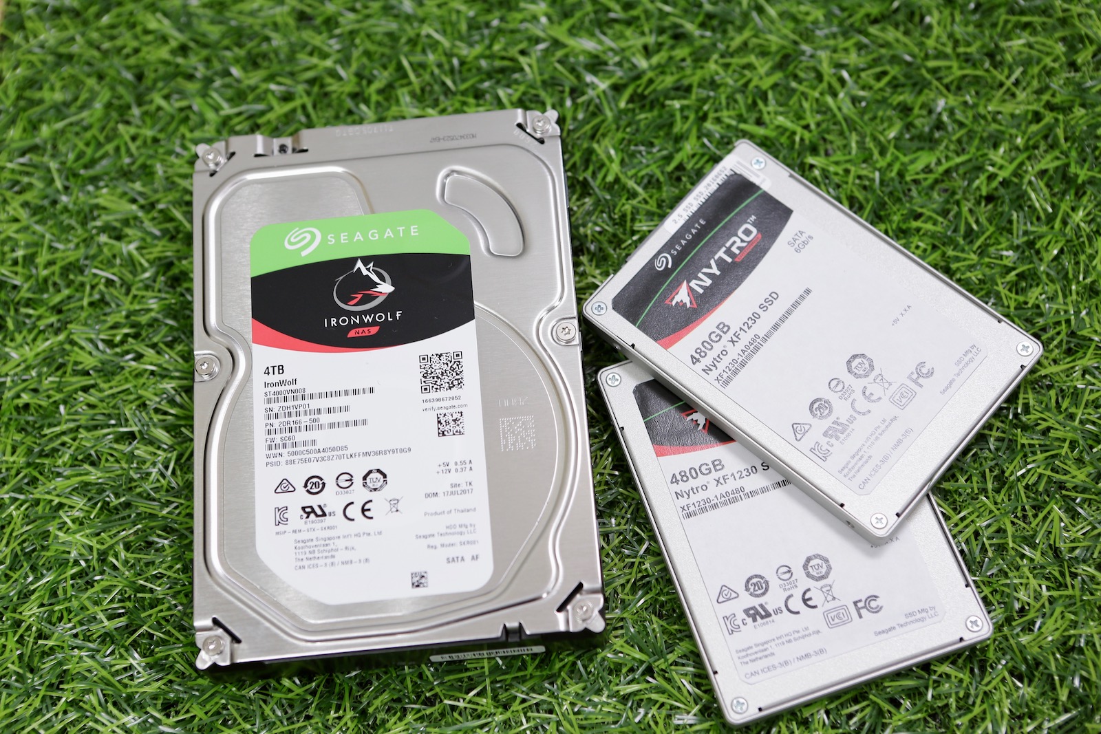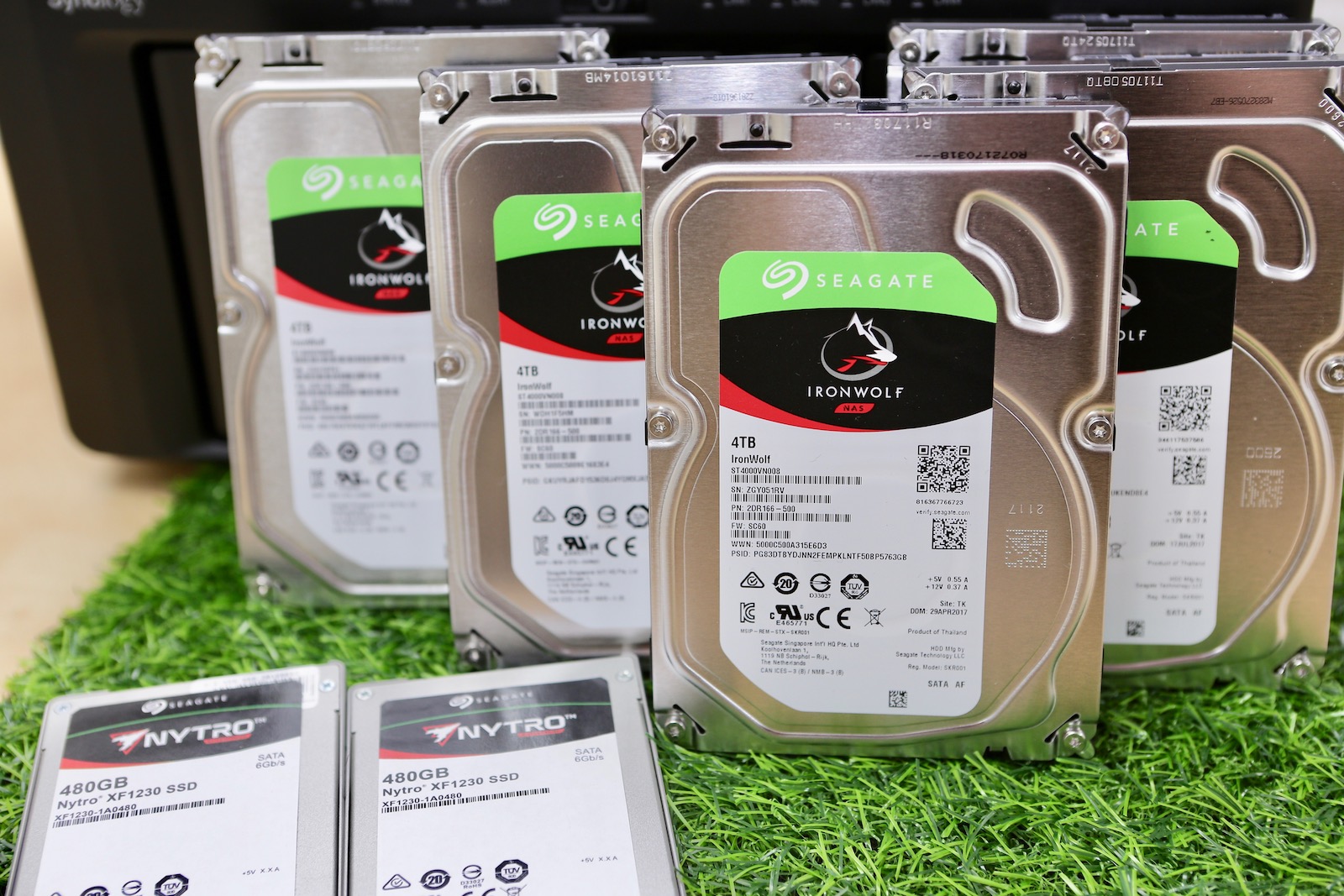 ▼ 硬碟的部份,則是塞入了 5顆 NAS 專用硬碟,Seagate IronWolf,以及借來的兩顆 Seagate 企業級 SSD。