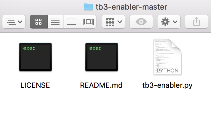 ▼ 下載完之後,解壓縮,我們會得到一個有這三個檔案的資料夾,我們真正需要的就是 tb3-enabler.py 這個。