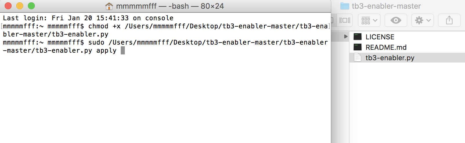 sudo tb3-enabler.py apply