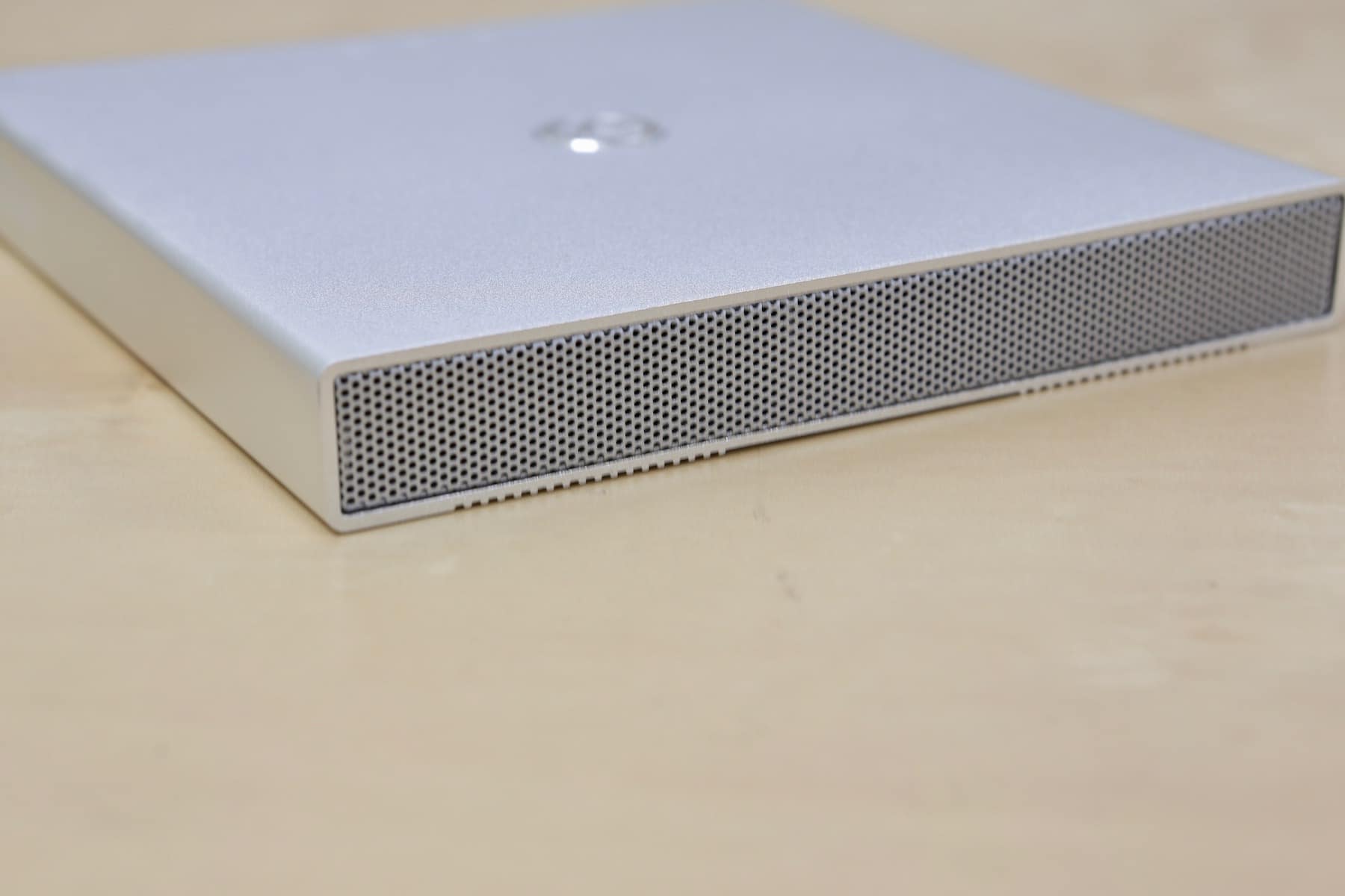 ▼ 側面是 RJ45 的實體乙太網路孔,頻寬規格為1Gbit/s(理論速度是125MB/s)且不需安裝任何驅動。我們在之前的文章有多次提及 1Gbit/s用途,家用網路對外通常最高只會用到 100Mbit/s 所以使用上並沒有差異,但如果有使用 NAS 這種會透過內網傳輸的裝置,就可以使用每秒 100MB 以上的速度來傳輸或備份檔案。