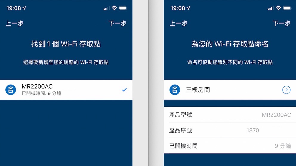 ▼ 放好位置之後,插上電源開機,但我們不用去登入第二台的什麼管理介面,我們繼續在第一台設定就好。按下「 WiFi 存取點就緒」