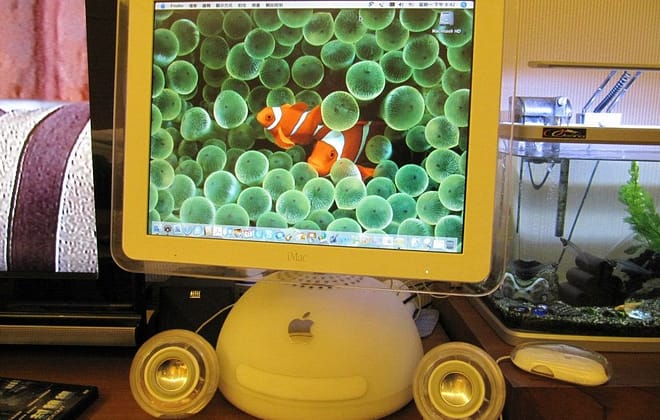 ▼ 接著我們來把它實際上擺到電腦旁邊看看,因為他本身真的不大,加上可以直立式擺放,所以放到 iMac 旁邊是真的很小。