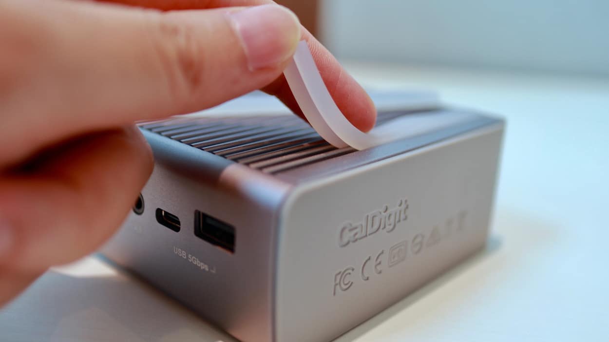 ▼ 這台 Dock 預設是讓你直立式擺放的,所以他的像橡膠止滑是做在下方。市面上大多的 Dock 都是平躺式的擺放,在空間上都會比較難以取捨,畢竟桌面就這麼大。