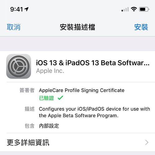 ▼ 註冊成為 Apple Beta Program 的使用者後,就可以下載描述檔開始下載 Public Beta 版本的 iOS 13。小編使用 iPhone X,目前體驗大致良好。