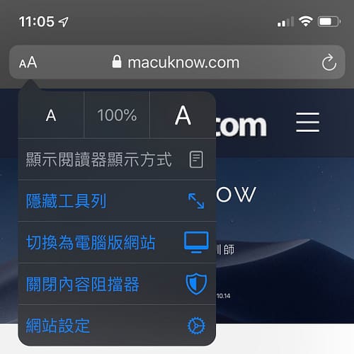 ▼ 接下來看到 Safari 網頁上的可調項目變多了。