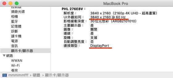 ▼ 其實 MacBook Pro 13吋 當然可以 4K@60,只不過不是透過原廠那條線。比方說我透過 DisplayPort,一直都是在外接 4K@60 的螢幕在使用。