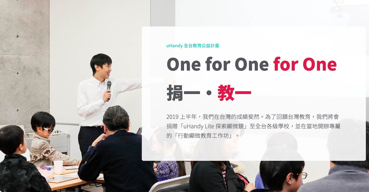 更別說他們現在還推廣一個 捐一、教一 (One for one for one) 的公益活動,一般常常看到的公益活動是買一送一,送一組給學校做公益,而他們更聚焦在捐與教上,為的是讓更多人都能擁有行動顯微的能力,不希望這個計畫只是把器材送去學校,而是透過現場教學,為老師們配備新的能力,並結合億觀在全球的教學經驗,一起激發靈感,發想出創新多元的課程。