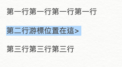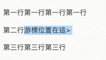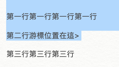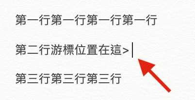 ▼ 一樣沒問題,首先我們先假設有三行文字,中間各有一行空白,游標此時在第二行尾部。