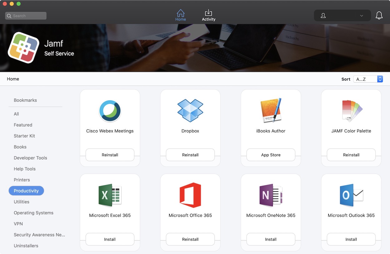 許多學校老師會想要把 App Store 關閉,避免小朋友自己下載遊戲來玩。不過那樣一來,老師們如果真的需要某個教學 App,反倒就很麻煩。所以 Jamf 提供了一個 Self Service,就像是自家的 App Store 一樣。