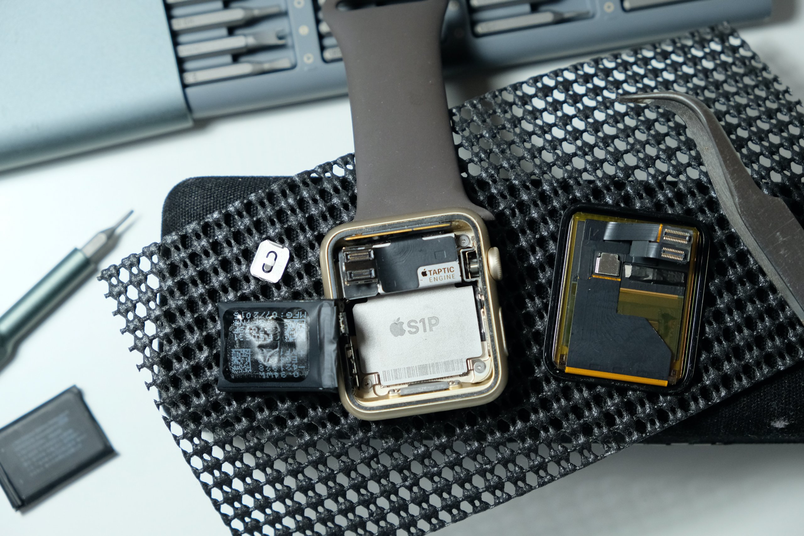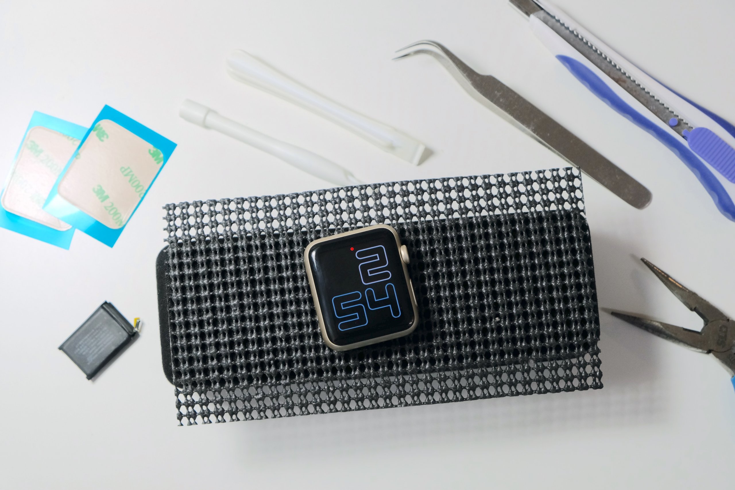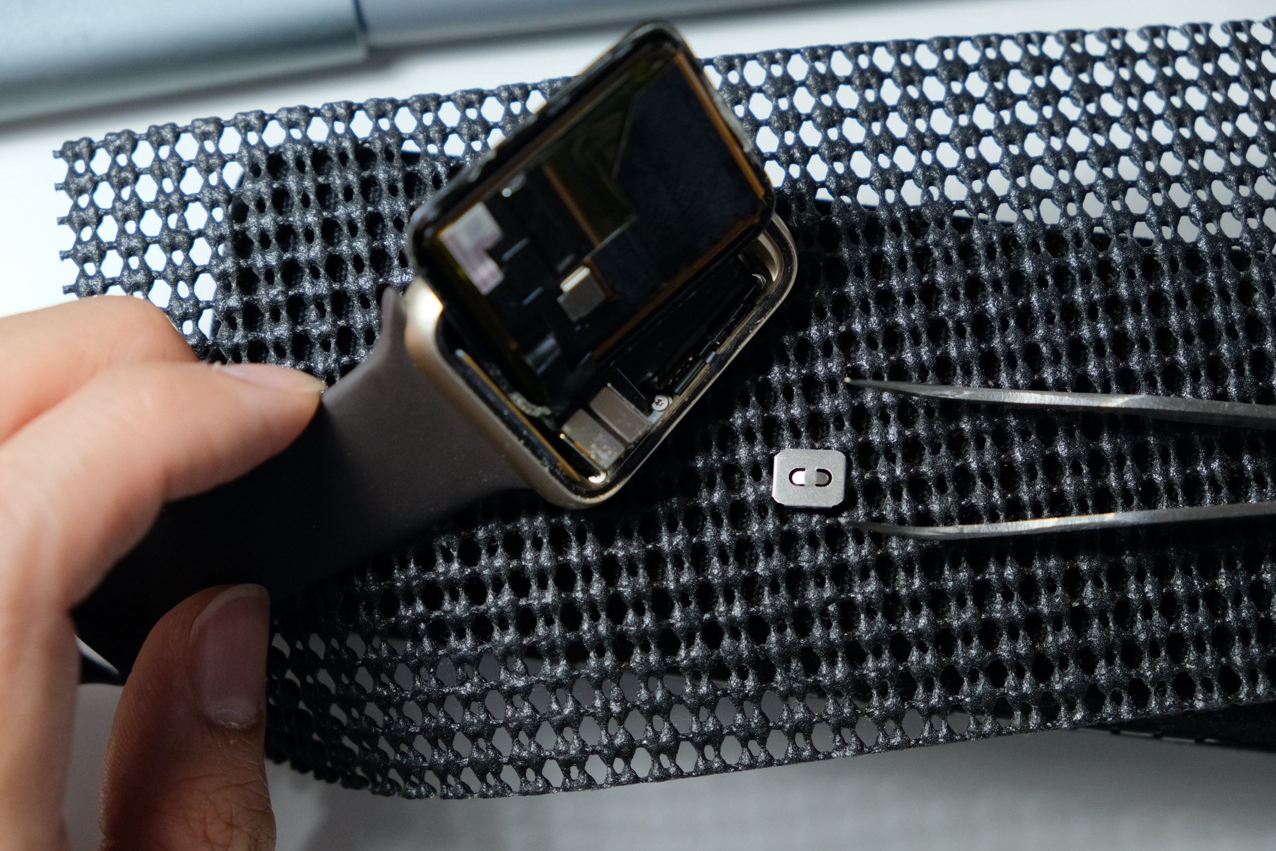接著準備進行拆解 Apple Watch 的第二個難關,在各個拆解影片裡面都花了相當的篇幅與時間在跟這塊金屬板搏鬥…