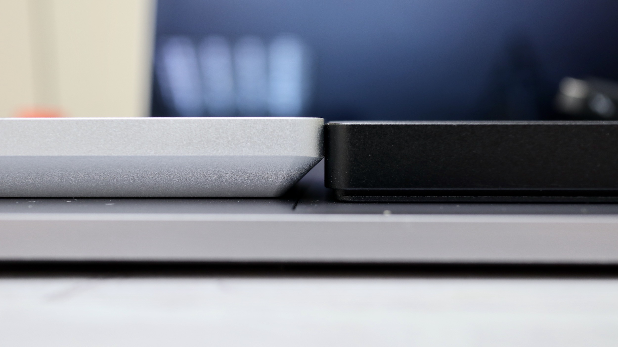 ▼ 不免俗的把他拿來跟 Envoy Pro EX USB-C 款(下方銀色)來比較一下,不但有身為 Thunderbolt 3 的速度優勢,體積上的設計也小了許多。