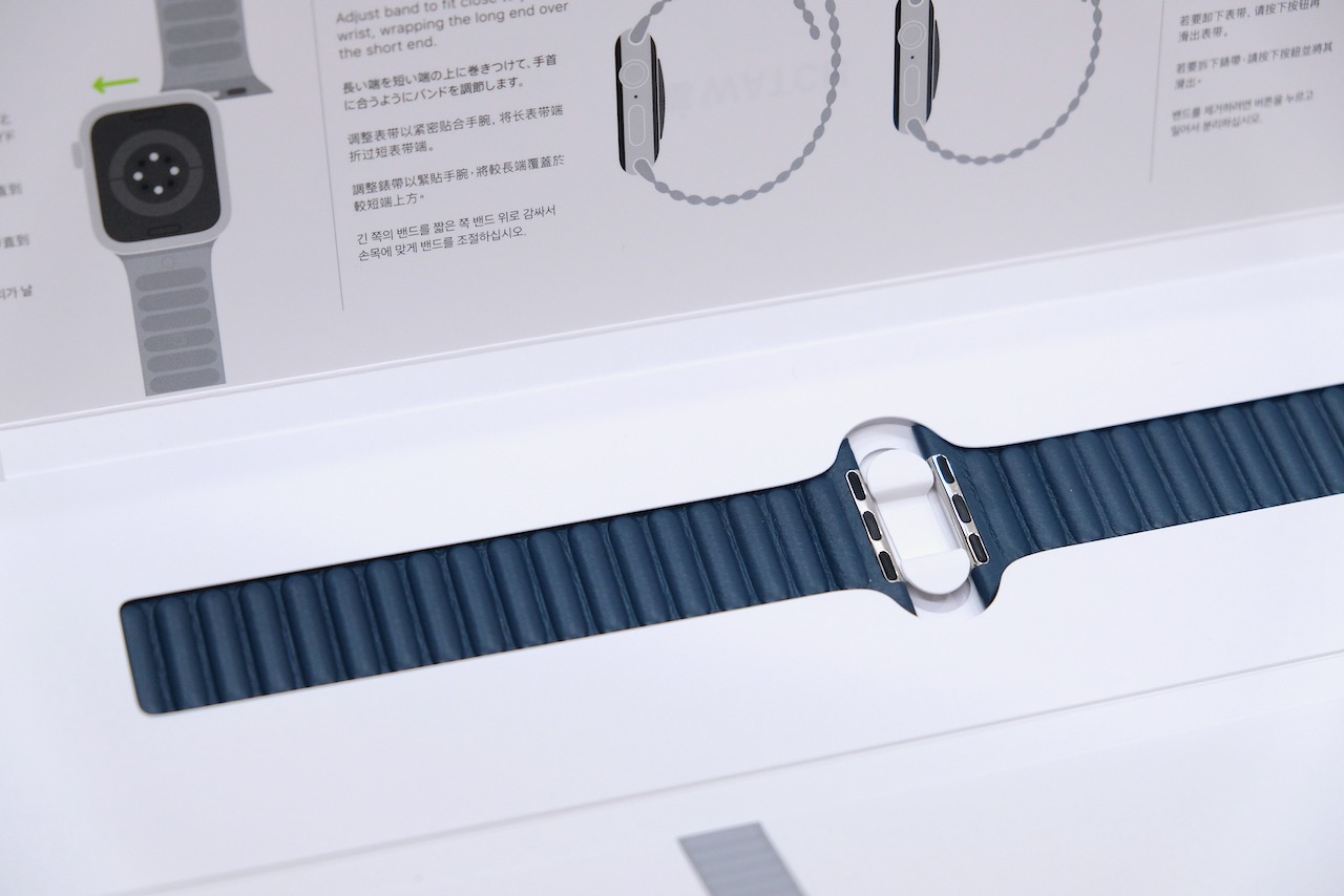 拿出錶殼外盒後,就看到了蘋果新發表的皮革鏈紋錶帶