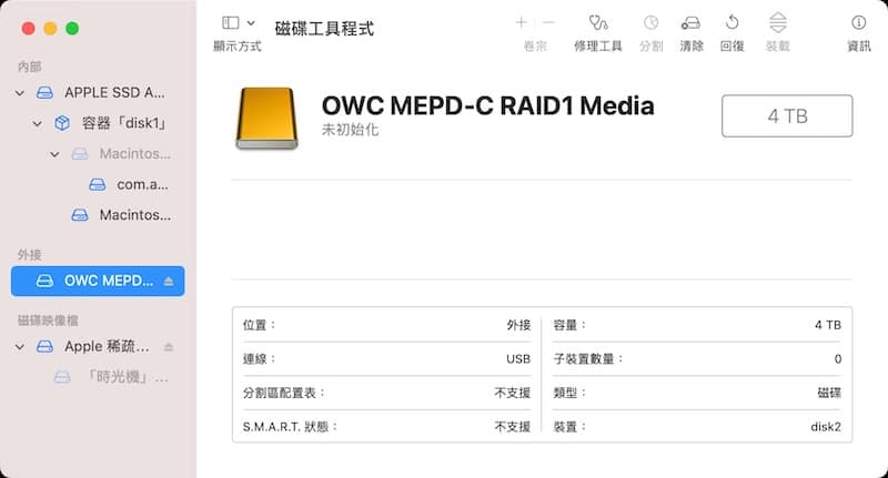 至於效能部分,當然 USB-C 的傳輸效能沒有 Thunderbolt 3 好,但由於這裡採用的是 USB 3.2 Gen 2, 10Gbps 的傳輸速度,也已經非常夠用,更不用說其實裡面的兩顆硬碟就算用 Raid0 模式,都不太可能超過 1000MB/s 的速度,以往在用 TB3 版本的 OWC Mercury Elite Pro Dock 時,除非後面繼續串接 TB3 設備,否則空有一身傳輸規格,大多時候都是無用武之地。