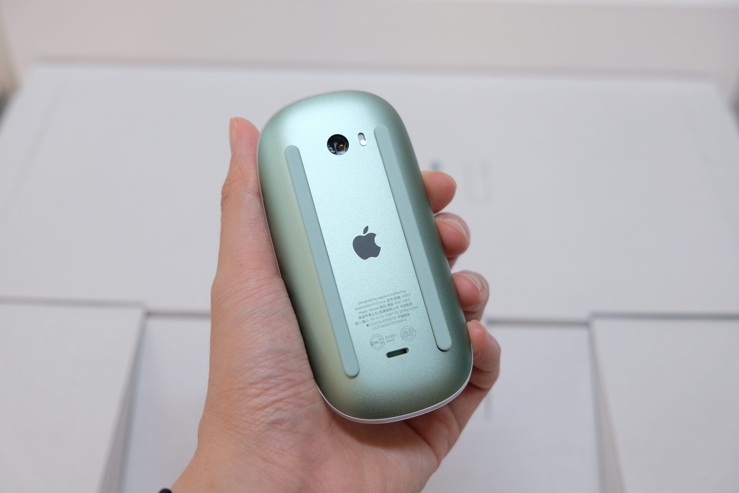 ▼ 包裝特立獨行的 Magic Mouse,一樣是綠色的,但我無論如何都無法適應 Magic Mouse 這麼奇幻的形狀,兩天後依約賣給朋友收藏。