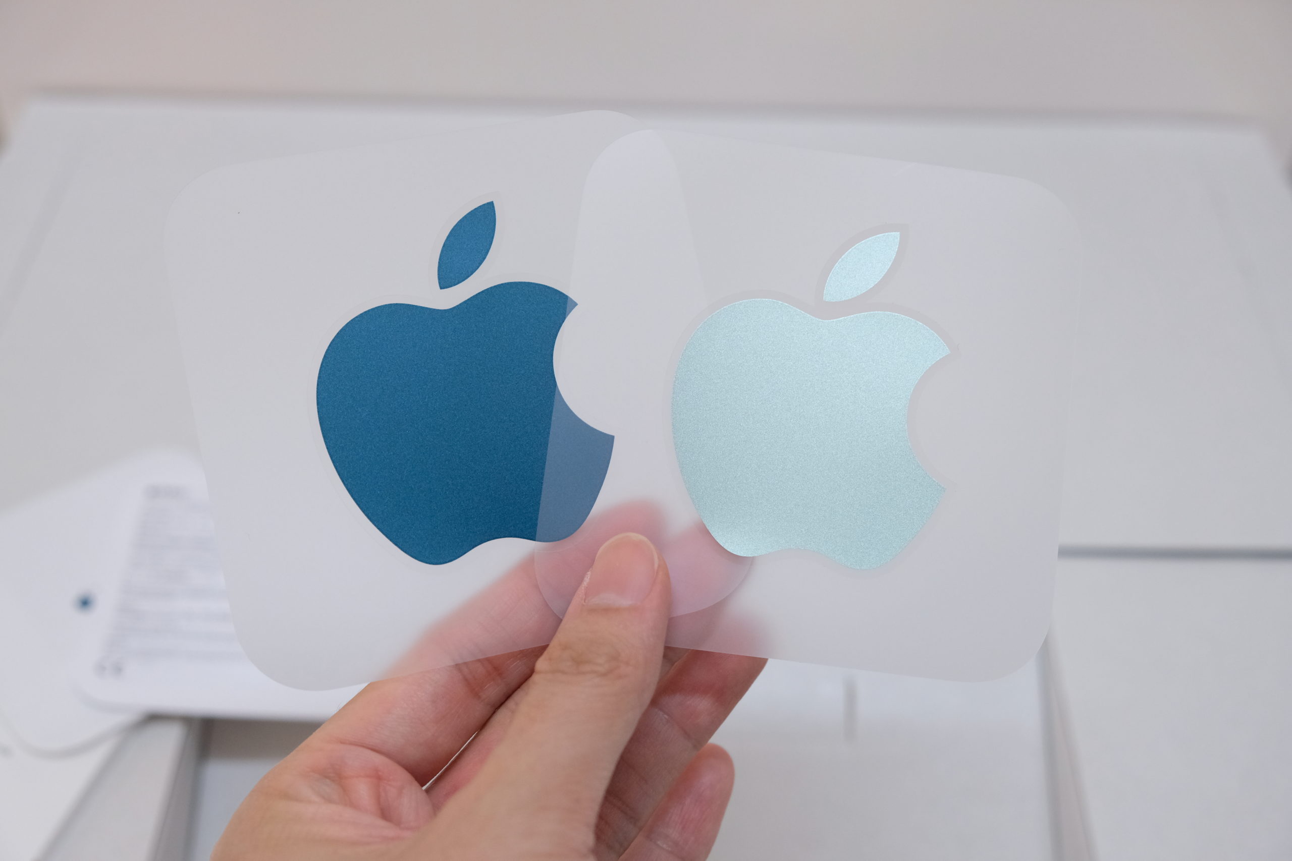 ▼ 來了,讓包色收藏家們崩潰,蘋果首次推出的彩色貼紙,兩種顏色,一個搭配機背的深綠色,一個搭配正面的淺綠色。