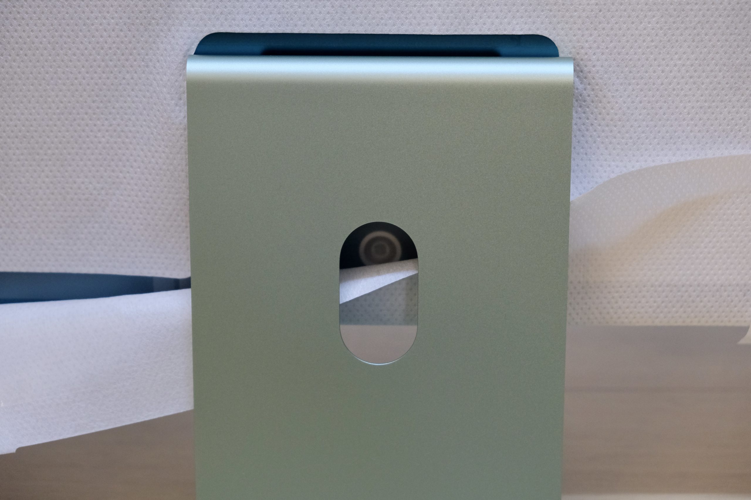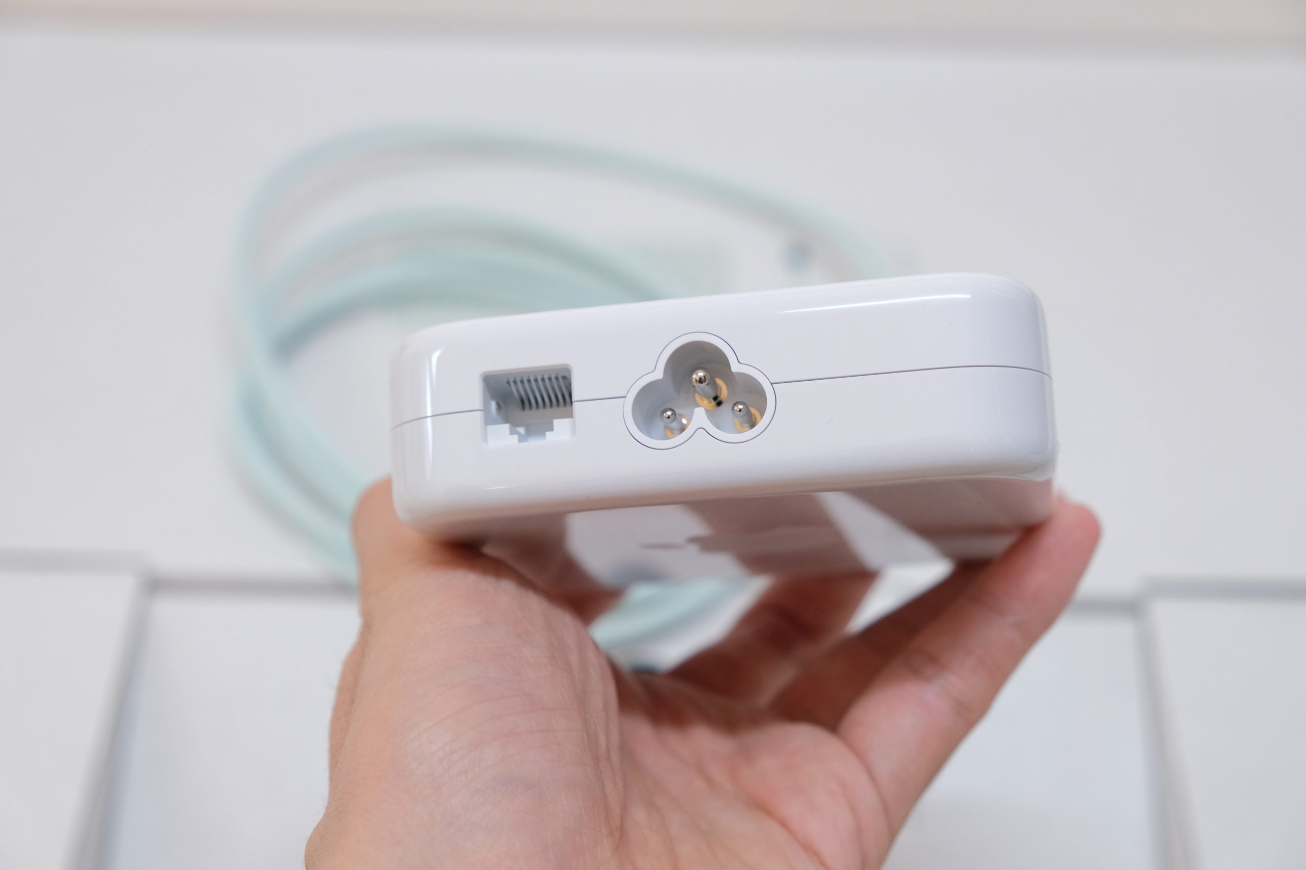 現在很多人已經不再使用實體網路線了,多數都用 Wi-Fi 來上網,但是如果 Wi-Fi 路由器規格不足,擺設位置沒規劃好,最好還是使用實體網路線,才能享用最穩定的連線品質。這次高規的 M1 iMac 把以太網路孔設計在變壓器上,也能算是巧思一個,因為這樣網路線就可以跟變壓器一起躺在地上,讓桌面盡可能保持整潔簡約。變壓器也是這代 iMac 跟上一代不同的地方,因為機身薄成這個樣子,想必變壓器這種東西是肯定塞不進去了,因此把變壓器獨立出來,還能”順便”插網路線。