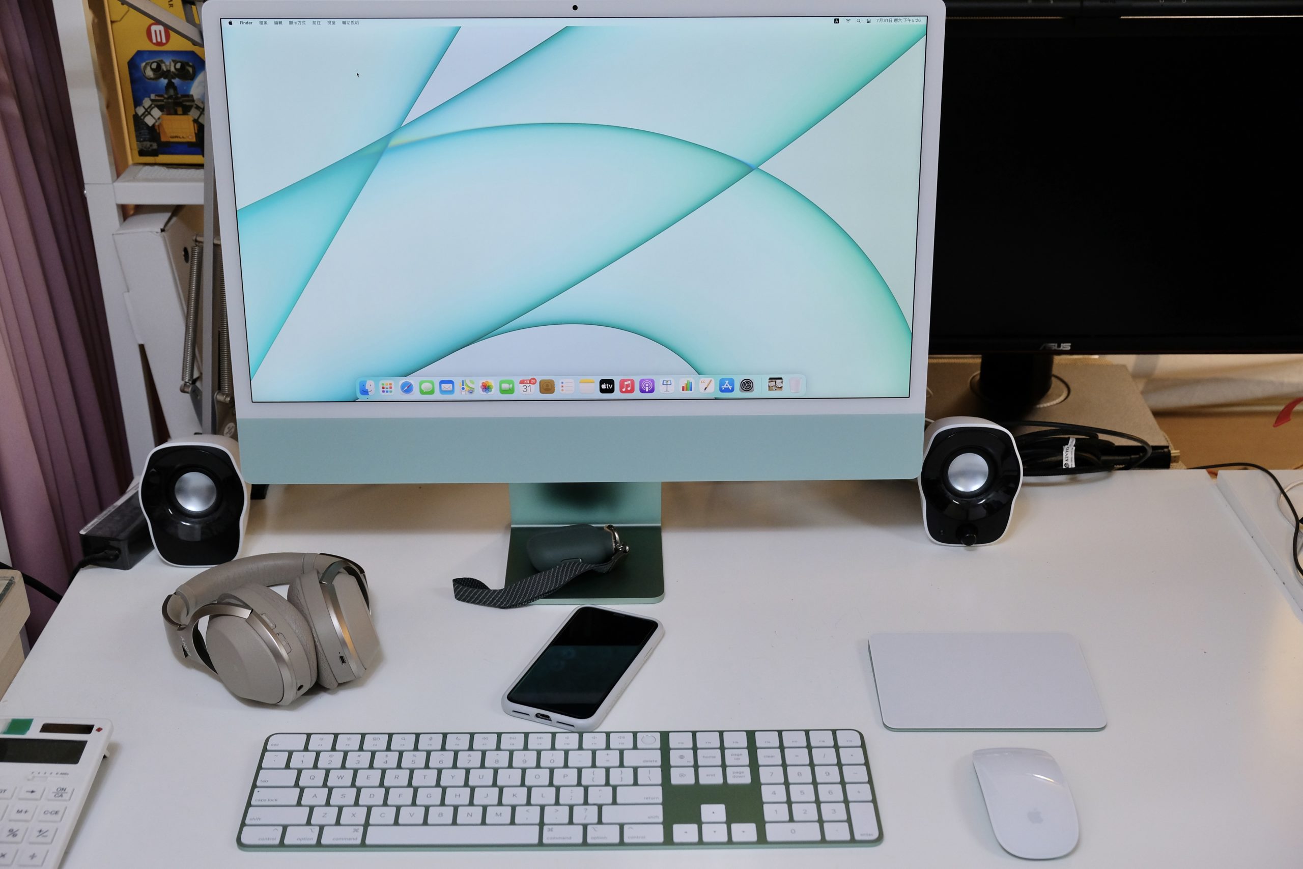 在我開始工作後,發現筆電的工作場景已經不太適合我的生活型態,以前我是把筆電每天背著去學校,去實驗室,連半夜社團討論我都帶著筆電,但現在工作有工作的電腦,Mac 的使用場景變成完全的家用角色,加上有 iPhone 跟 iPad 的支援,蘋果筆電對我來說幾乎不再有意義了,因此在 2010 年第一次使用過 iMac 的 11 年後,我再一次選擇了蘋果當初威震四方,用一條電線就能啟動的 iMac。