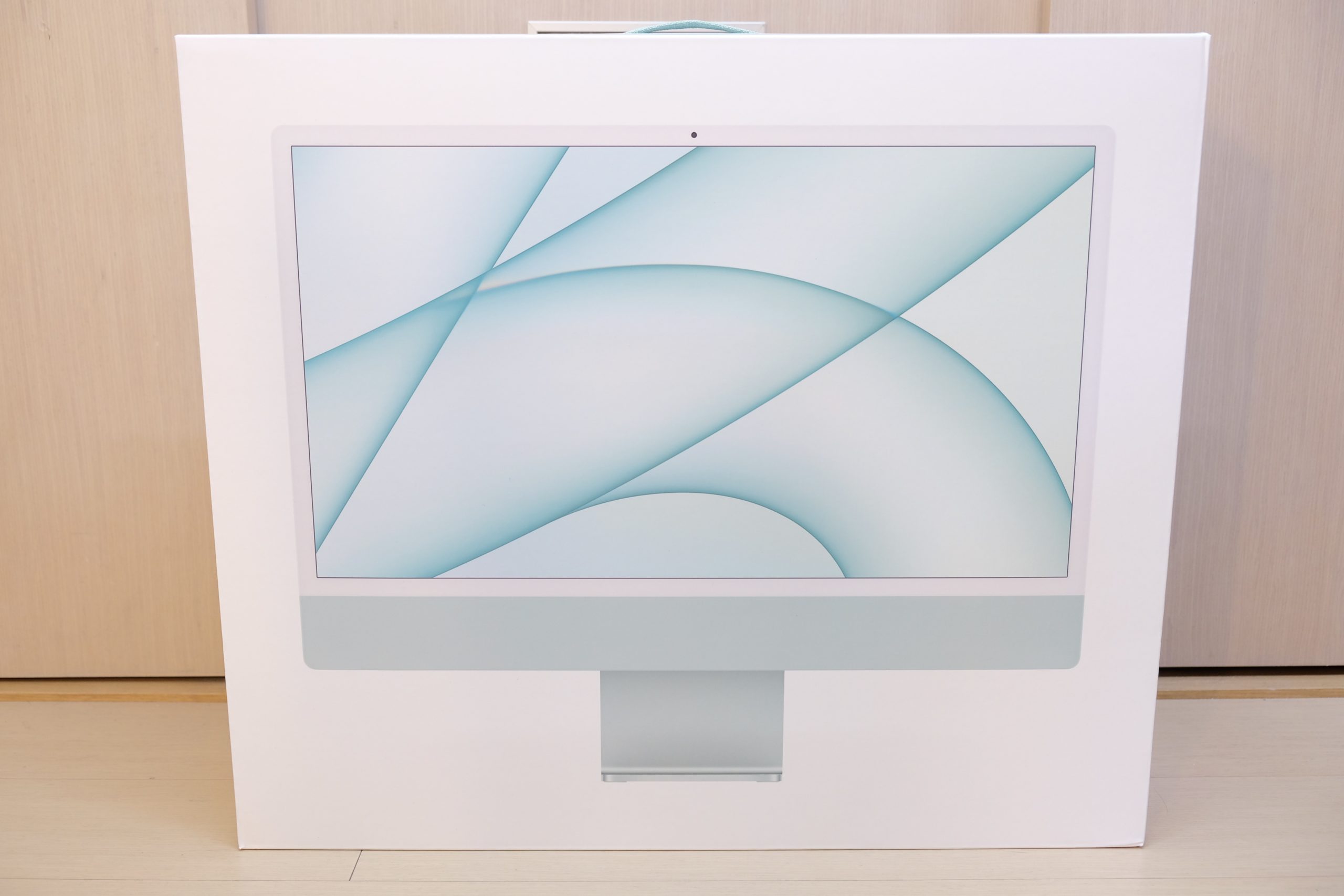 ▼ 這次的 M1 iMac 設計,從外箱就開始可以看到蘋果滿滿的誠意,不只是彩色機身的印刷,連提把都是同色系的配色。