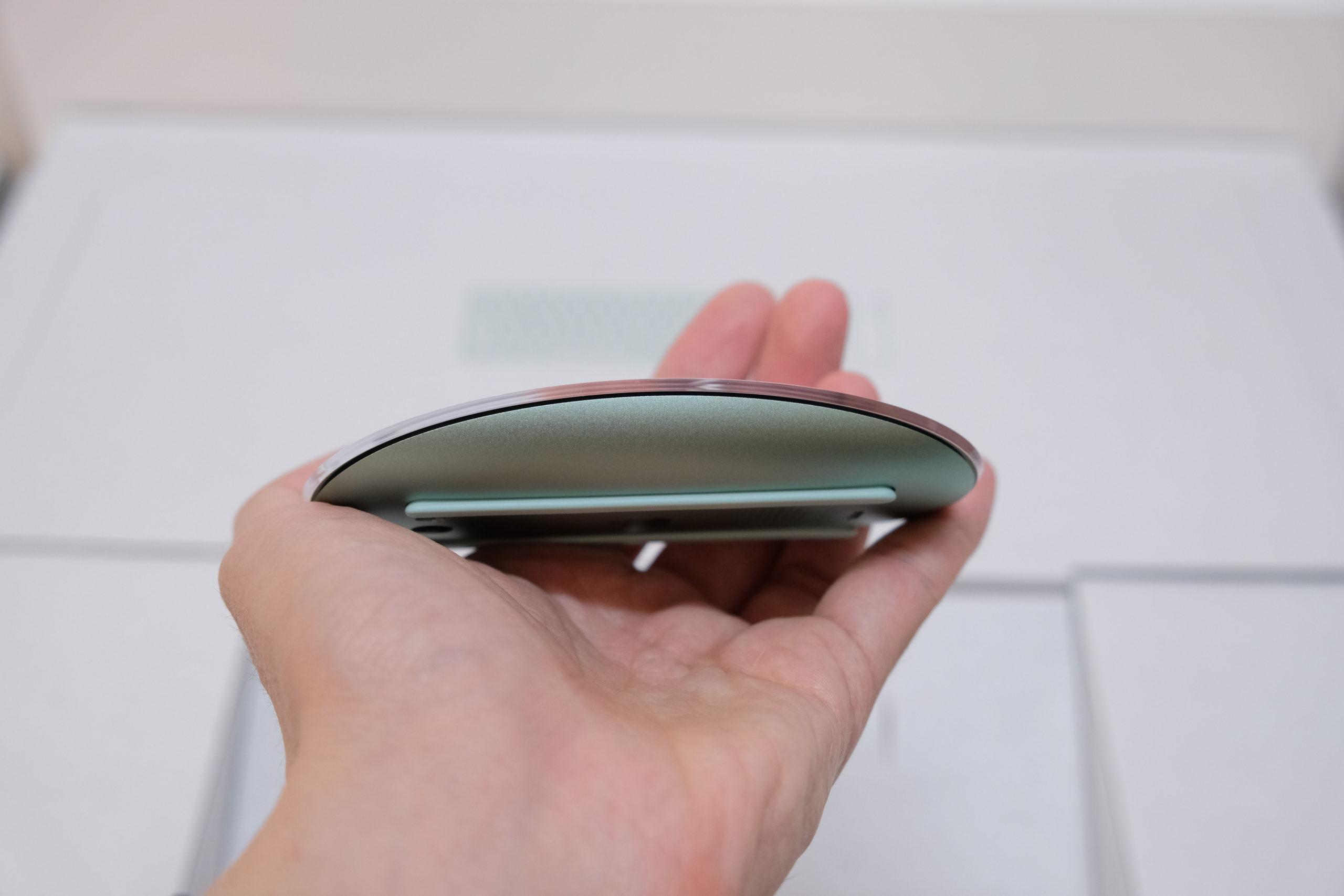 ▼ 包裝特立獨行的 Magic Mouse,一樣是綠色的,但我無論如何都無法適應 Magic Mouse 這麼奇幻的形狀,兩天後依約賣給朋友收藏。