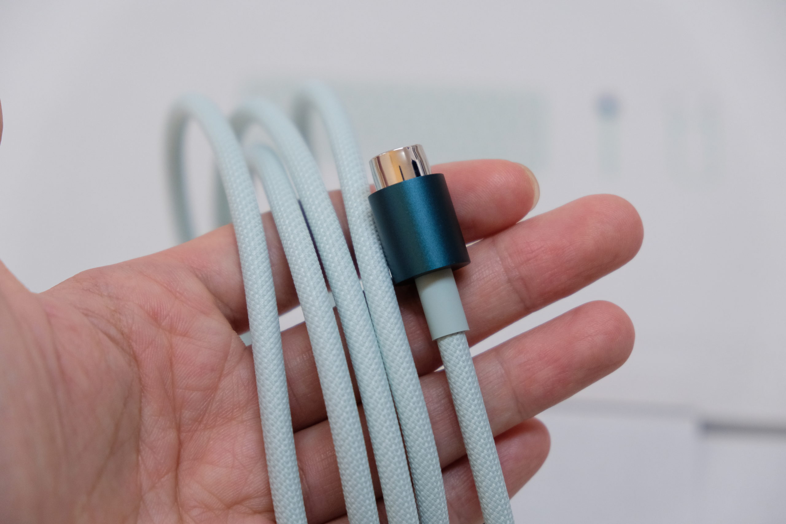 ▼ 這次 M1 iMac 最讓人發出讚嘆的其中一個配件配色的編織 USB-C Lightning 連接線。
