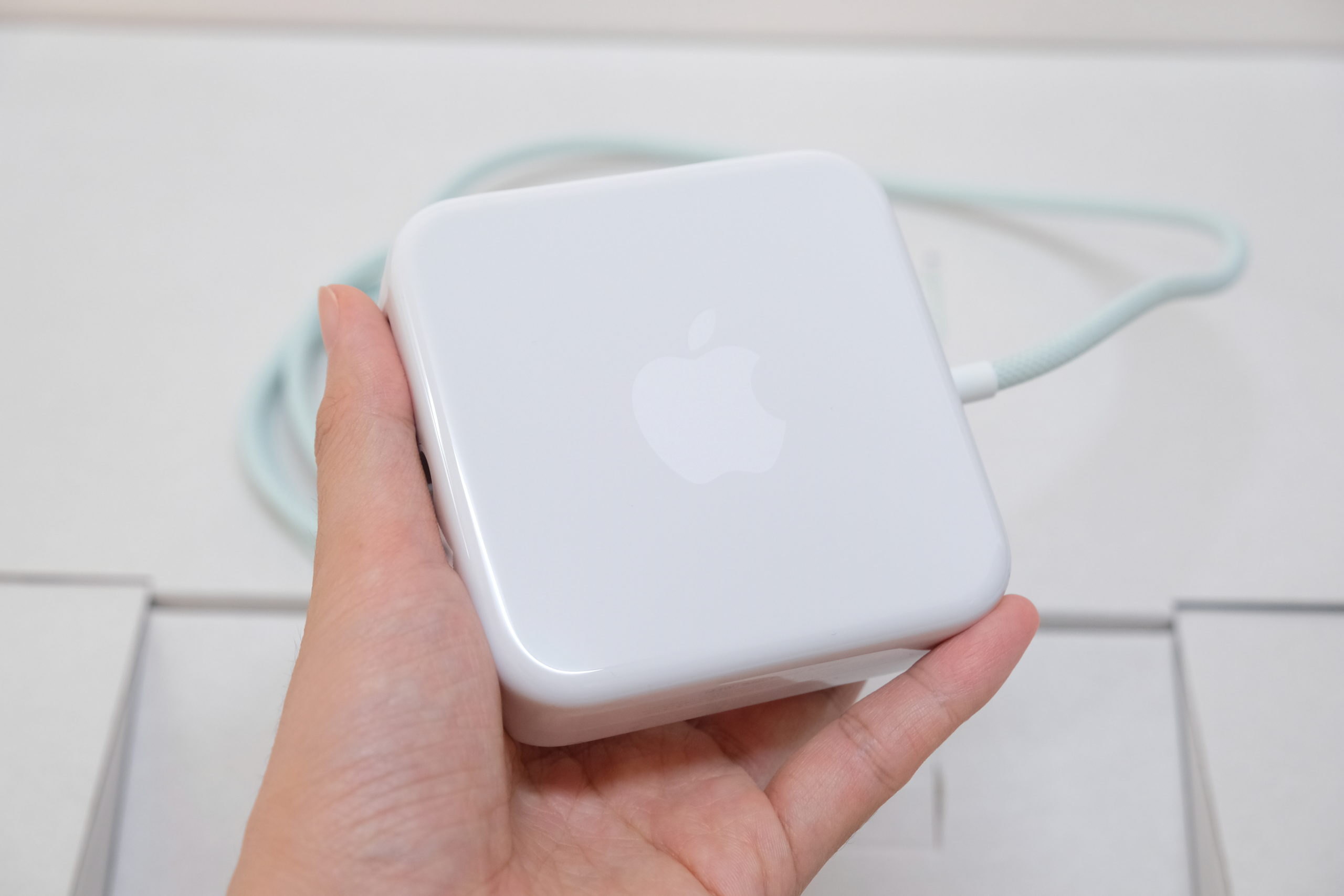 ▼ 同樣配色的電源線跟變壓器,這裡可以看到蘋果神乎其技的綑線執念,我怎麼看都看不出來這電源線是怎麼綑的,而且一旦打開,就完全再也繞不回去。